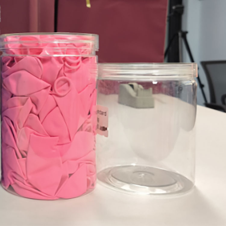 தெளிவான பிளாஸ்டிக் ஜாடி பல்வேறு அளவுகளில் வருகிறது. சிறிய திறன் கொண்டவை சுவையூட்டிகள், தின்பண்டங்கள், அழகுசாதனப் பொருட்கள் போன்றவற்றை சேமிப்பதற்கு ஏற்றவை. பெரிய கொள்ளளவு கொண்ட மாதிரியானது உணவுகள் அல்லது பருப்புகள், பிஸ்கட்கள், ஸ்டேஷனரிகள் மற்றும் பலூன்கள் போன்ற பொருட்களை சேமிப்பதற்கு ஏற்றது. குடும்ப வாழ்க்கை, நிறுவனங்களின் அலுவலக வேலை மற்றும் வெளிப்புற முகாம் போன்ற பல்வேறு சூழ்நிலைகளில் அவை பரவலாகப் பயன்படுத்தப்படுகின்றன.