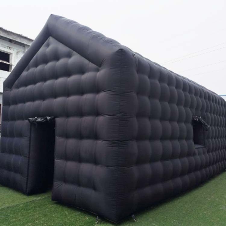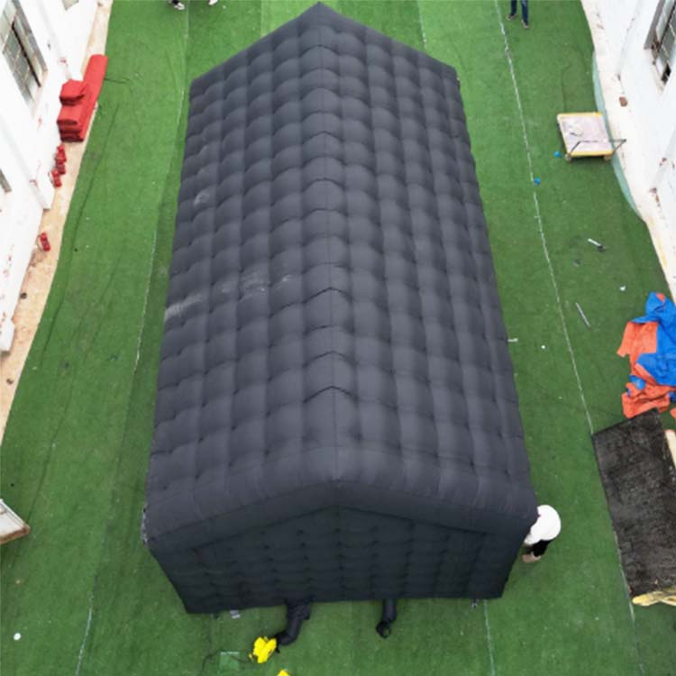 இந்த கருப்பு ஊதப்பட்ட கியூப் ஊதப்பட்ட கூடாரம் அதிக வலிமை கொண்ட ஆக்ஸ்போர்டு துணி பொருட்களால் ஆனது.