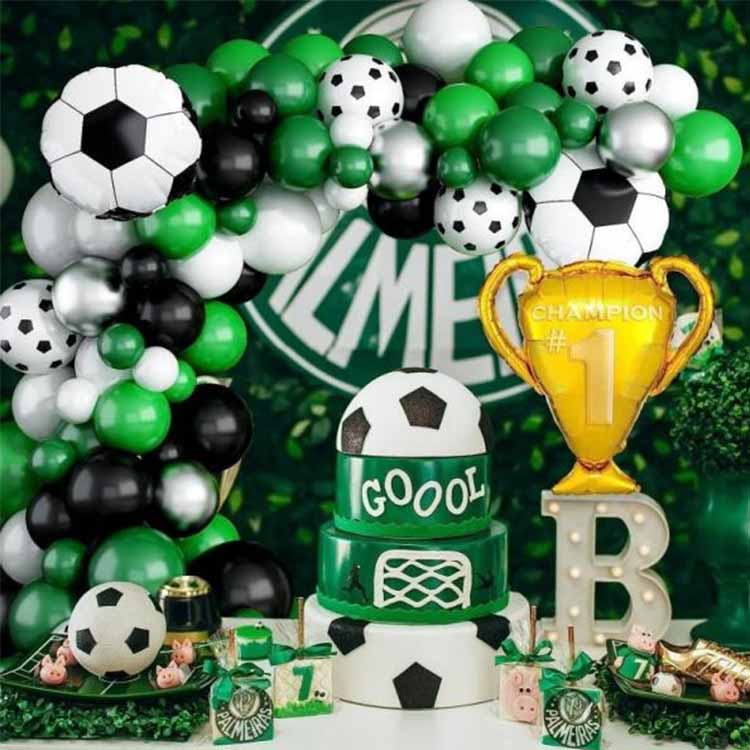 கால்பந்து தீம் கொண்ட பலூன் ஆர்ச் கிட்கள் 101 கூறுகளைக் கொண்டுள்ளது, இதில் லேடெக்ஸ் பலூன்கள், ஃபாயில் பலூன்கள் மற்றும் அசெம்பிளி கருவிகள் ஆகியவை அடங்கும். அவர்கள் 2 முதல் 3 மீட்டர் விட்டம் கொண்ட ஒரு வளைவின் வடிவத்தில் ஒரு அலங்கார பின்னணியை உருவாக்க முடியும்.