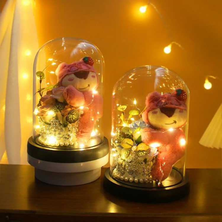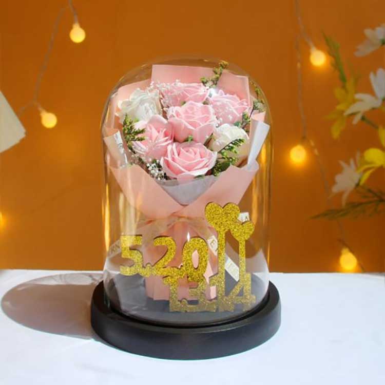 தனிப்பயனாக்கம்: சிறிய அளவு தனிப்பயனாக்கம் மற்றும் மாதிரிகள் உள்ளன. உங்களுக்காக சோப்பு பூக்களுக்கு அடுத்ததாக பல்வேறு பொம்மைகள் அல்லது அலங்காரங்களை நாங்கள் வைக்கலாம்.