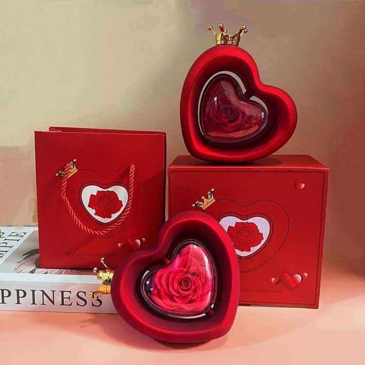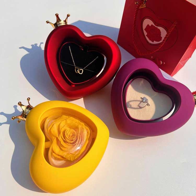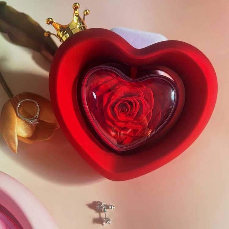 ஹார்ட் ஷேப் ரோஸ் ஜூவல்லரி பாக்ஸ் கிரேடு A பாதுகாக்கப்பட்ட பூக்களைப் பயன்படுத்துகிறது, அதன் நிறம் மற்றும் அமைப்பு புதிய பூக்களிலிருந்து பிரித்தறிய முடியாது.