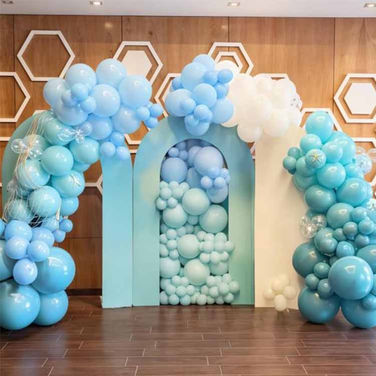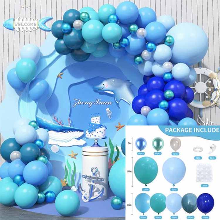 3.சிறப்பு விளைவு பலூன்கள்: முத்து நீல பலூன்கள் (கடல் பிரதிபலிப்புகளை உருவகப்படுத்துதல்) மற்றும் வரிசைப்படுத்தப்பட்ட பலூன்கள் (நீருக்கடியில் நட்சத்திர ஒளியை உருவகப்படுத்த உள்ளமைக்கப்பட்ட வெள்ளி அல்லது நீல சீக்வின்களுடன்)