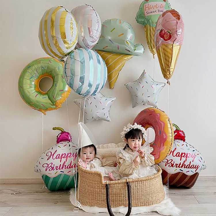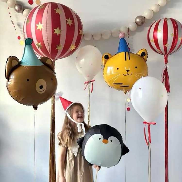 10-இன்ச் சுற்று, நட்சத்திரம் மற்றும் இதய வடிவங்கள் போன்ற அளவுகளை வழங்கும், தனிப்பயனாக்கப்பட்ட ஃபாயில் பலூனில் உங்கள் லோகோவைப் பிரதியெடுக்க, ஸ்கிரீன் பிரிண்டிங் தொழில்நுட்பத்தைப் பயன்படுத்தலாம்; 18 அங்குல சுற்று, நட்சத்திரம் மற்றும் இதய வடிவங்கள்; 4D பலூன்கள்; சூடான காற்று பலூன் வடிவங்கள், முதலியன
