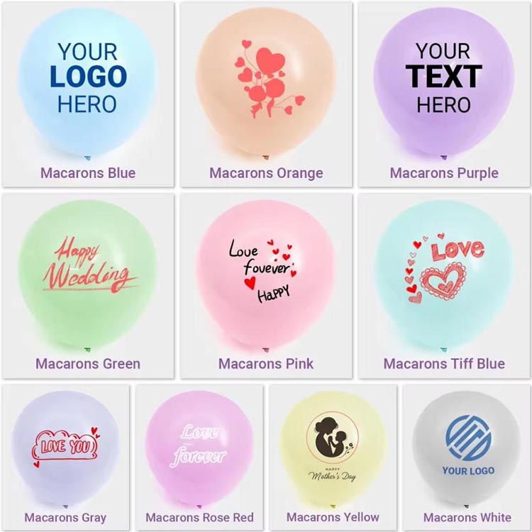 எங்கள் தனிப்பயனாக்கப்பட்ட லேடெக்ஸ் பலூன்கள் ஆறு வண்ண லோகோக்கள் வரை ஆதரிக்கப்படும் சிக்கலான வடிவமைப்புகளால் ஆதரிக்கப்படுகின்றன!