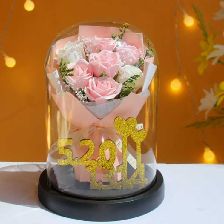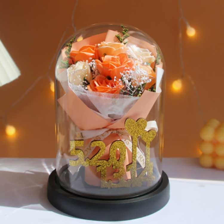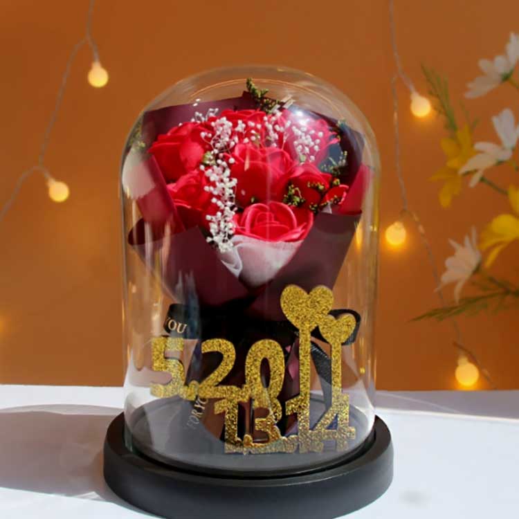 இந்த கண்ணாடி ரோஜா பூங்கொத்து பூக்கள் வாடாமல் தடுக்க வடிவமைக்கப்பட்டுள்ளது, மேலும் உள்ளே இருக்கும் ரோஜாக்கள் மங்காது. பூங்கொத்து மிகவும் உயிரோட்டமானது, உண்மையான பூக்களிலிருந்து கிட்டத்தட்ட பிரித்தறிய முடியாதது, மேலும் இது பூங்கொத்தின் அழகை நன்றாக வெளிப்படுத்தும். உள்ளே, 520+1314 என்ற தங்க எண்கள் 520 மற்றும் 1314 எண்களைக் குறிக்கின்றன, இது அன்பைக் குறிக்கிறது மற்றும் இந்த பரிசின் சிந்தனையை எடுத்துக்காட்டுகிறது.